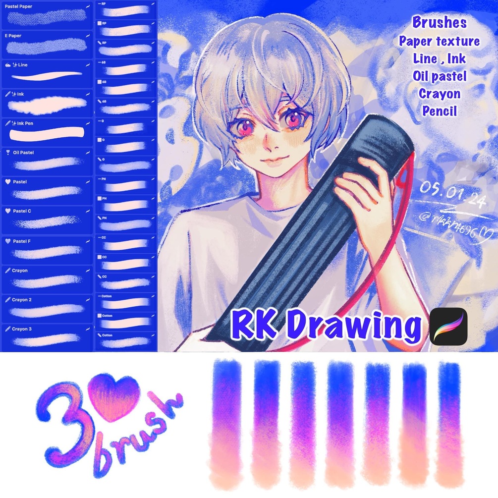 Procreate drawing brushes, crayon brushes set for procreate, procreate oil pastel, sketch brushes, painting brushes, coloring brushes pack