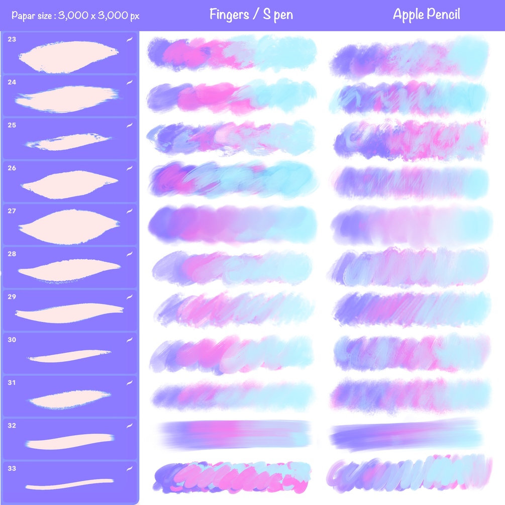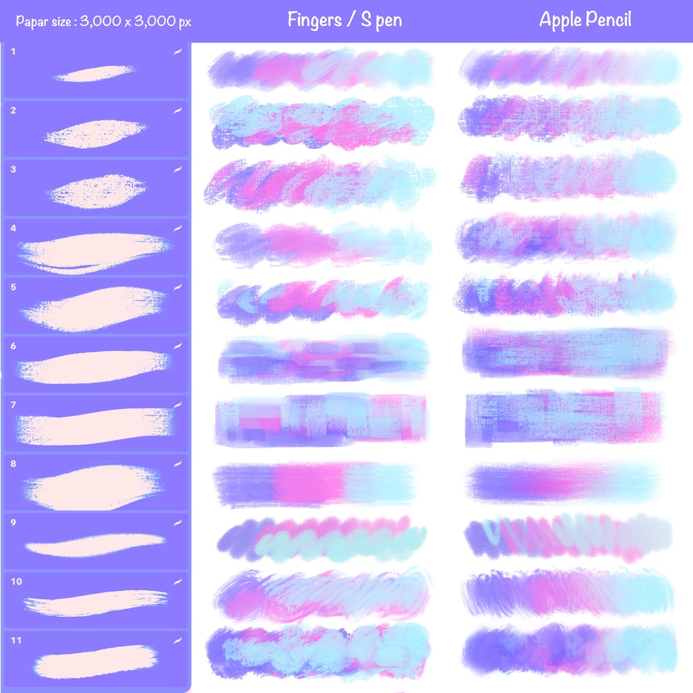 📌 It is recommended to use Apple Pencil to get the most out of the brushes as most brushes are set to support pressure.