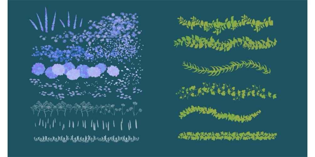 RK Meadow, nature brushes, stamp brushes for Procreate