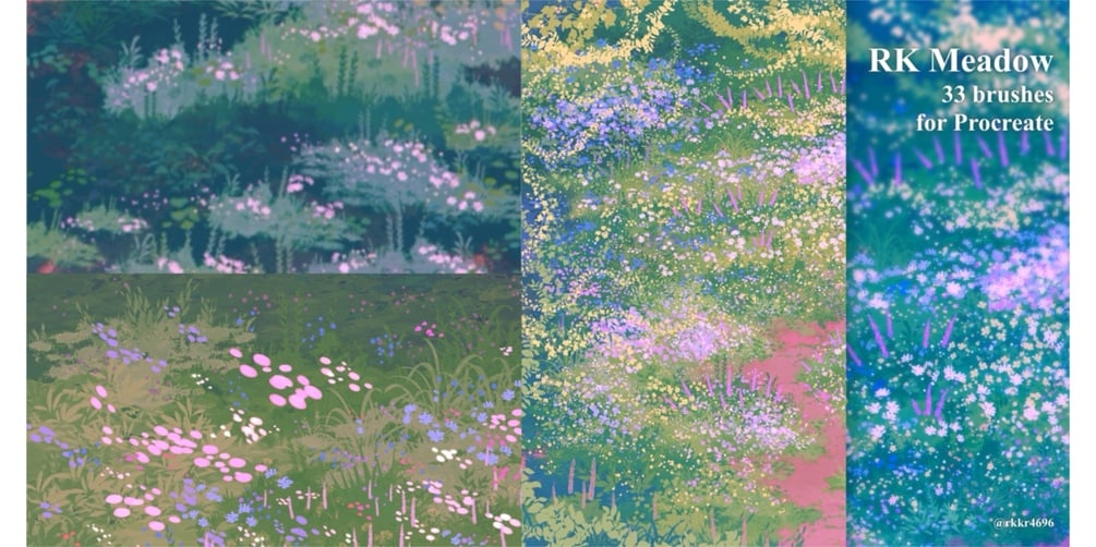 πŸ€ RK Meadow 33 brushes, stamp brushes for Procreate πŸ€